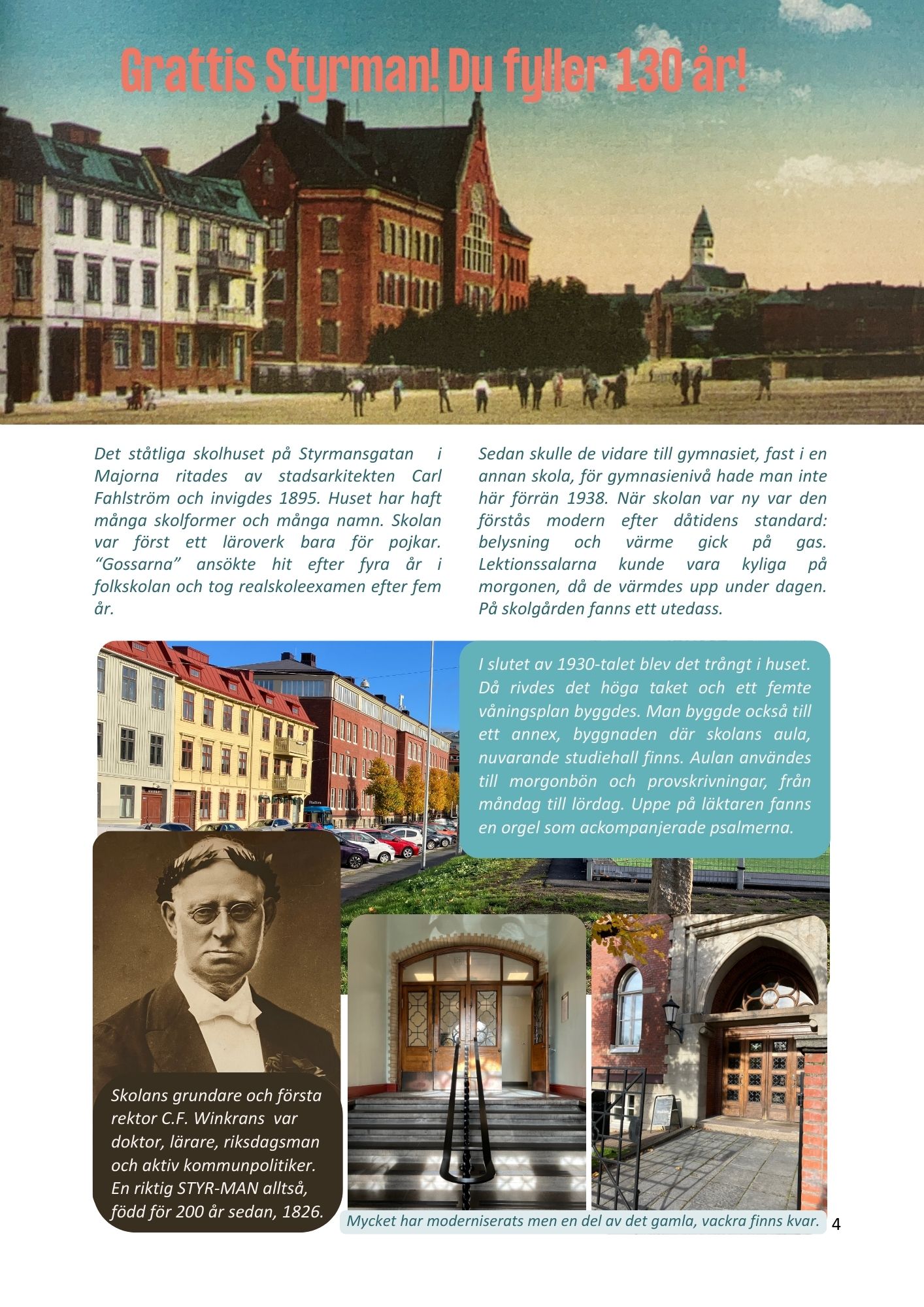 Studium på Styrmansgatan har hyst många elever genom åren sedan den byggdes 1895; från läroverk för unga pojkar med utedass och gasvärme, till dagens moderna skola med elever från många olika länder och med fokus på utbildningar som leder till jobb. Det var först 1942 som flickor fick tillträde till skolan och idag har vi bara kvinnliga rektorer och chefer. Vi tänker att skolans grundare och förste rektor C.F. Winkrans hade varit otroligt stolt om han hade sett vår skola idag!